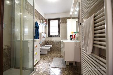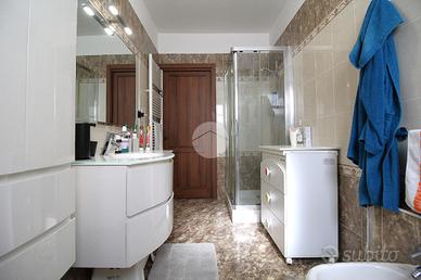 Completa il piano il bagno finestrato accessoriato con doccia e sanitari sospesi dalle linee moderne.