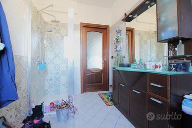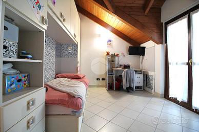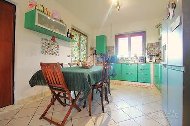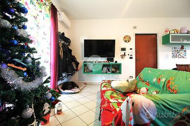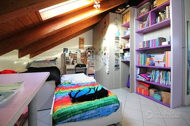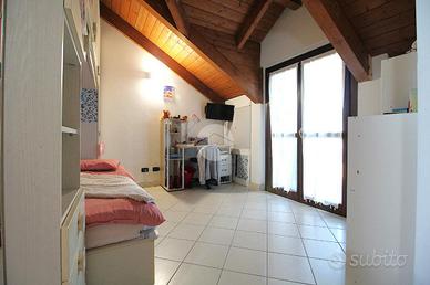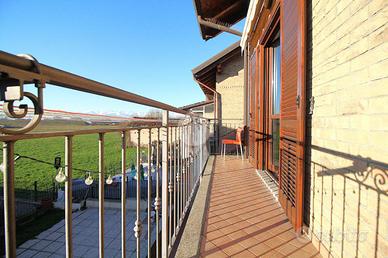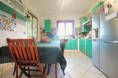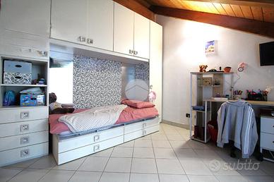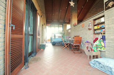 In Zona periferica del paese, immersa nel verde ma comoda agli accessi autostradali, villetta a schiera di recente costruzione rifinita in paramano. La casa si sviluppa su due livelli abitativi principali. La zona giorno al piano terreno è dotata di una cucina abitabile di generosa dimensione in cui è possibile sfruttare una comoda parete cottura angolare. Il soggiorno è posizionato di fianco alla cucina e consente di essere arredato con un ampio divano e parete soggiorno; La portafinestra illumina la stanza e permette di raggiungere il giardino e cortile di pertinenza. Il bagno del piano è dotato di ampia doccia e sanitari moderni. La scala interna conduce al piano primo, in cui è presente la zona notte. La camera da letto matrimoniale è di dimensione generosa, mentre la seconda camera da letto risulta molto luminosa grazie alla portafinestra che conduce al lungo balcone di pertinenza. Completa il piano il secondo servizio dotato anch'esso di doccia oltre all'impianto di carico e scarico per la lavatrice. Al piano sottotetto è presente un ampio locale unico open space da sfruttare in base alle proprie esigenze, dotato di balcone, oltre alla pratica lavanderia. L'intero piano è caratterizzato dal tetto in legno a vista. Al piano interrato è presente la comoda autorimessa di pertinenza di circa 24 mq. Dotata di portoncino basculante di ingresso. Dal box auto è possibile raggiungere il locale cantina che è stato rifinito. La villetta è dotata inoltre di un porticato che risulta ideale per trascorrere le belle giornate estive, oltre ad essere sfruttato per vivere momenti di convivialità con amici e familiari. La porzione di giardino posta di fronte all'abitazione è stata piantumata con fiori e piante. La villetta, di costruzione del 2009, è dotata di riscaldamento a pavimento sezionato per piano, così da garantire consumi contenuti regolabili sulle proprie necessità. Gli infissi sono realizzati in legno e dotati di vetri doppi. Sono presenti inoltre i condiz