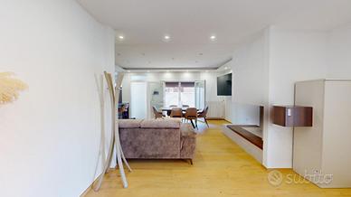 L'intera zona giorno è impreziosita dall'abbondante luce, che entra da finestre e dalle soluzioni scelte per le finiture extra capitolato.