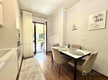 In zona centrale e comoda ai principali servizi, villa a schiera ristrutturata con giardino privato.