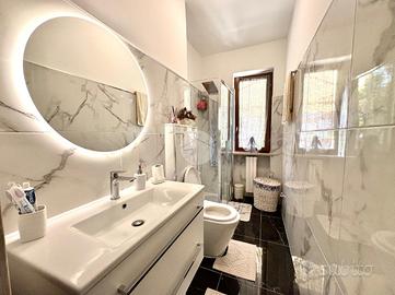 Completa la proprietà il piano mansardato, collegato mediante scala interna, e il piano semi-interrato caratterizzato da una spaziosa taverna con angolo bar, bagno dotato di box doccia, cantina e box auto doppio.