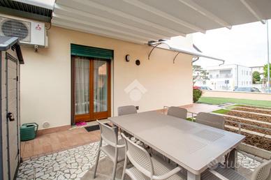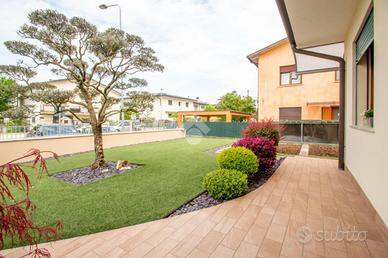 Rettorgole - in posizione strategica siamo lieti di proporre una villetta semi indipendente molto curata, razionale nella disposizione e ubicata in un contesto riservato e residenziale. L'unità immobiliare è composta da: ingresso zona living open space di ottime metrature che affaccia sul giardino, molto curato, di proprietà esclusiva; sempre al piano terra è presente un bagno completo di servizio alla zona giorno dotato di finestra; al primo livello sono presenti tre camere da letto ed un bagno anch'esso finestrato. Al piano interrato direttamente comunicante con l'abitazione troviamo un garage molto ampio di otlre 40 mq. L'unità immobiliare è dotata di climatizzatore, impianto d'allarme, giardino piantumato con manto sintetico rifatto nel 2025, zanzariere. La palazzina è stata ridipinta esternamente nel 2025. Si tratta di una soluzione abitativa senza alcun lavoro da eseguire e pronta per essere abitata. OPPORTUNITA' INTROVABILE