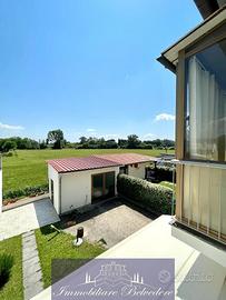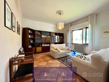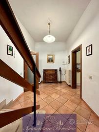(Riferimento: a25102) a25102 - CAMPI BISENZIO/SAN DONNINO: Immerso nel verde, a distanza di sicurezza rispetto ai corsi d'acqua (Bisenzio e torrenti circostanti) ed in prossimità della futura fermata della tramvia, IMMOBILIARE BELVEDERE proponine in vendita ampio e luminoso terratetto semi-indipendente (200 mq c.a.) sviluppato su due livelli e libero su tre lati, composto da: ingresso, soggiorno, cucina abitabile, sala da pranzo, due camere da letto matrimoniali, due camere da letto singole con doppi servizi finestrati oltre a pratico ripostiglio, soffitta, doppio balcone (di cui uno regolarmente verandato), giardino e resede esclusivi di 125 mq complessivi. L'immobile si presenta in ottime condizioni, la parte esterna (tetto e facciate) è stata ristrutturata ed isolata termicamente (cappotto termico) mentre internamente è stato rinnovato a metà anni 2000 rifacendo : pavimento piano terra, cucina, bagni, porte interne, ripristino marmo e graniglia, rendendolo immediatamente abitale. Gode di tripla esposizione con piacevoli affacci sul verde circostante ed è dotato di portone blindato, doppi infissi di ultima generazione, aria condizionata, impianto antifurto e tende da sole Gibus. Termosingolo con caldaia a condensazione ( rinnovata nel 2021), classe energetica D. Completa la proprietà un garage ad uso esclusivo di 25 mq c.a.