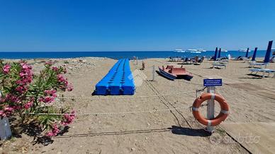 Il villaggio, con accesso diretto alla spiaggia attrezzata, offre numerosi servizi: bar, ampi viali alberati ideali per passeggiate, campi da tennis, calcio, padel e piscina, il tutto immerso in un contesto tranquillo e ben curato.
