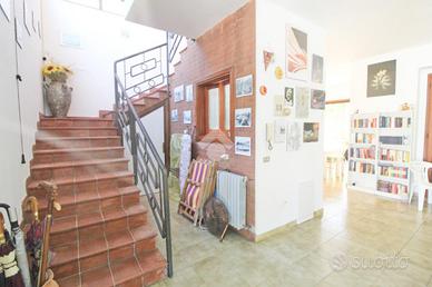 La villa è dotata di aria condizionata e radiatori con gas metano, garantendo comfort in ogni stagione.