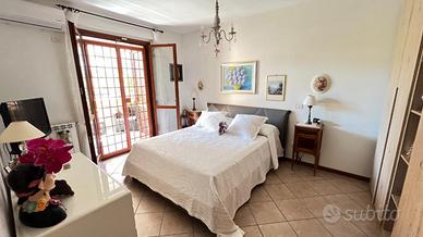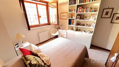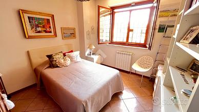 Salendo al primo piano, la camera matrimoniale regala un'atmosfera intima e rilassante, con accesso diretto ad un terrazzo privato dove godersi piacevoli momenti all'aperto. La seconda camera, ideale per bambini o ospiti, completa la zona notte insieme ad un elegante bagno dotato di doccia sensoriale, pensata per offrire attimi di benessere quotidiano.