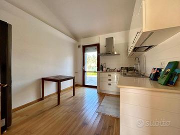 La proprietà, sviluppata su un unico livello, è abbracciata da un curato giardino piantumato su tre lati, uno spazio verde pensato per accogliere momenti di relax, convivialità e vita all'aria aperta, in un contesto silenzioso ma strategicamente collegato alla città e a tutti i principali servizi.