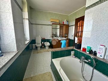 Salendo al piano superiore, si trova la zona notte, articolata in tre camere da letto matrimoniali di diverse metrature, pensate per rispondere alle diverse esigenze della famiglia. Sullo stesso livello è presente un secondo bagno, di generose dimensioni, dotato di vasca.
