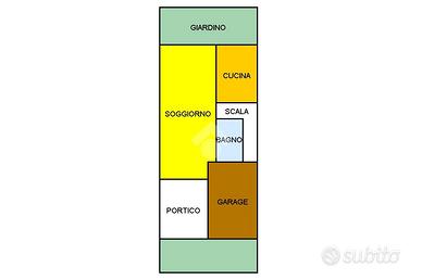 Entrando all'interno di questa soluzione centrale, al pian terreno troviamo il reparto giorno, composto da un ampio soggiorno, una cucina abitabile separata, un garage singolo, un bagno di servizio con annessa lavanderia ed un comodo portico. Salendo al primo piano invece troviamo la zona notte, composta da tre camere da letto matrimoniali ed un secondo bagno finestrato.