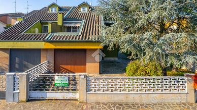 CARPI. Villa ad angolo bifamiliare abbracciata su tre lati dall'ampia area cortiliva privata, sita in una zona riparata dal traffico ma comoda a molteplici servizi.