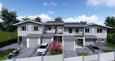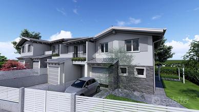 CASALGRANDE: Nuova costruzione di quattro villette di nuova generazione, in classe A4, antisismiche, ben rifinite con riscaldamento a pavimento, fotovoltaico, impianto a pompa di calore. Composizione: piano terra con zona giorno di 33 mq. , bagno, garage e portico; Piano primo con tre camere, balcone e bagno. Area cortiliva privata su due lati con carraio e cancello pedonale privati. Sul soggiorno possibilità di realizzare ampia pergola, verso il giardino. Possibilità di massima personalizzazione interna. Possibilità di permuta immobiliare. Antisismiche, con impianto fotovoltaico. Consegna Dicembre 2025.