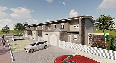 SALVATERRA: Nuova villetta a schiera centrale in classe A, con riscaldamento a pavimento, pannelli fotovoltaici 3kw implementabili, no gas. Composta da: Piano Terra con ingresso, soggiorno con angolo cucina di 35 mq., garage con vano tecnico, giardino sul retro comunicante con la zona giorno e area cortiliva sul davanti; Piano Primo con ampio disimpegno con possibilità di armadio a muro, due camere doppie, camera singola e ampio bagno. Possibilità di posto auto privato davanti al garage. Consegna entro fine 2026.