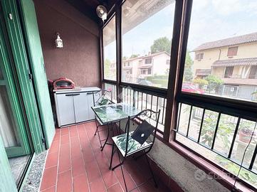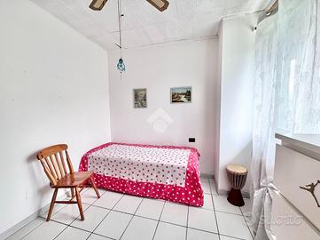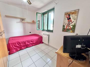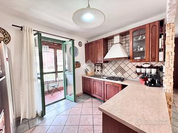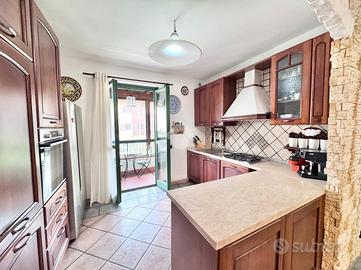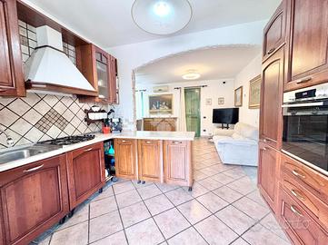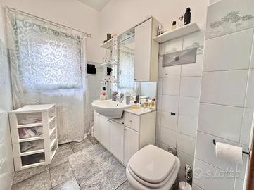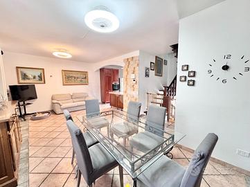 La cucina a vista sul soggiorno, è funzionale e dispone di un comodo balconcino chiuso con zanzariere, perfetto per le colazioni estive. Un bagno di servizio finestrato completa il piano terra, garantendo praticità e comfort.