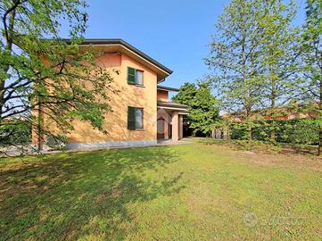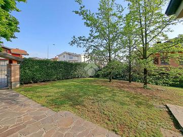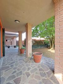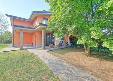 Con i suoi due livelli fuori terra la villa vanta un'estetica impeccabile e abbellita dai caratteristici mattoncini a vista. È circondata sui tre lati più luminosi, Sud-Est-Ovest, di un bellissimo giardino privato che, in alternanza con i porticati e la terrazza sul lato della cucina, mette a disposizione un ambiente esterno da sogno nei periodi belli dell'anno. Gli accessi pedonale e carraio sono automatizzati.