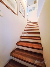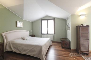 Il piano superiore, accessibile da sinuosa ed elegante scala in muratura con gradinata in parquet, regala una grande zona notte mansardata ma perfettamente illuminata grazie alla presenza di finestre a luce diretta e di due terrazzini. La camera da letto matrimoniale vanta la presenza del bagno padronale con vasca idromassaggio e nel quale ritroviamo la resina e i termo-arredi. La seconda camera offre una superficie tale da poter ospitare due ragazzi.