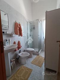 Villa a schiera su due livelli composta da: ingresso in soggiorno, camera da letto, cameretta e bagno al piano rialzato; Al piano seminterrato comoda tavernetta con angolo cottura, ripostiglio e servizio. Giardino antistante e retrostante di 300 mq ca. con posti auto. Ottima posizione zona c.da fra diavolo in complesso con guardiania h24.