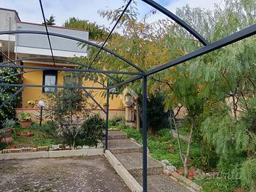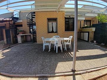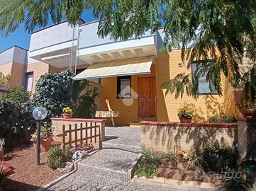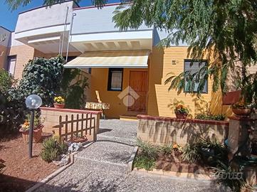 La villa è composta dall'ingresso che conduce a un soggiorno-pranzo luminoso con camino, perfetto per creare un ambiente caldo e accogliente, affiancato da un cucinino riservato. La zona notte comprende una camera matrimoniale, una cameretta e un bagno funzionale. All'esterno, un giardino di circa 250 mq, disposto sia sul fronte che sul retro, offre aree ideali per relax, cene all'aperto o giochi all'aria aperta. La casa è dotata di riscaldamento , climatizzatori e viene venduta parzialmente arredata, pronta per essere abitata fin da subito.