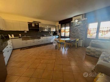 Dall'ingresso, percorrendo il vano scala, si incontra un primo ripostiglio e poi si giunge al primo piano in cui è disposta la zona giorno, suddivisa in spaziosissima cucina abitabile, con doppio accesso sul terrazzino di pertinenza, e soggiorno con balcone.