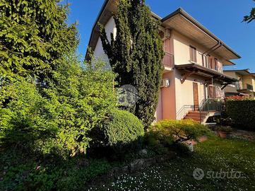 CASTEL MELLA: in tranquilla zona residenziale proponiamo in vendita villa in bifamiliare con ampio giardino di proprietà disposto su tre lati dotato di portico perfetto per momenti di relax all'aperto, cene in compagnia o per godersi le giornate primaverili ed estive. L'ingresso si apre su un luminoso soggiorno con sbocco sul giardino, una cucina separata abitabile ed un primo bagno finestrato con doccia. Tramite scala di collegamento interna si accede a piano primo composto da due camere matrimoniali dotate di balcone, una terza camera matrimoniale ed un secondo bagno finestrato dotato di vasca. Completano la proprietà a piano interrato una taverna ideale per godersi i momenti di relax e le gironate invernali, una lavanderia, un ripostiglio nel sottoscale ed un ampio box auto. Presente un secondo posto auto coperto assegnato. Questa villa rappresenta un'opportunità unica per chi desidera vivere in un contesto tranquillo senza rinunciare alla vicinanza di tutti i servizi.
