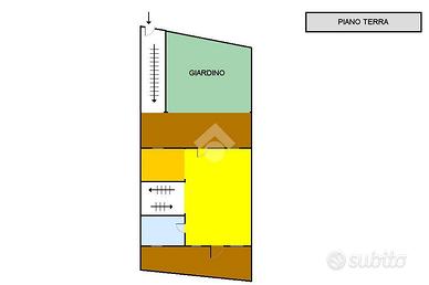 Piano Terra: salone living, cucina, bagno, terrazzo di circa 20 mq, giardino di circa 50 mq;