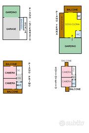 Al piano terra, veniamo subito accolti da un ampio e luminosissimo soggiorno-cucina grazie al doppio accesso sul giardino e sul balcone di pertinenza. Sullo stesso piano, vi troviamo un bagno con finestra.