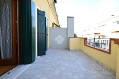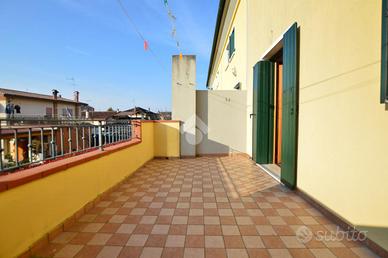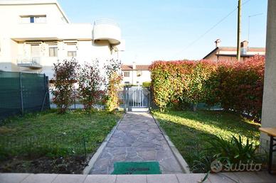 Ceggia, a pochi passi dal centro e dai principali servizi, proponiamo schiera di testa sviluppata su tre livelli. Al piano terra si trova la zona giorno composta da soggiorno, cucina separata e bagno di servizio. Salendo al primo piano si sviluppa la zona notte con una camera singola e una camera matrimoniale, entrambe dotate di ampio terrazzo, oltre a un bagno finestrato con vasca. Al secondo piano è presente un bagno finestarto con doccia e due pratici locali ad uso magazzino, ideali come spazi di deposito o da adattare alle proprie esigenze. La proprietà è completata da garage e giardino privato.