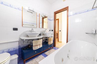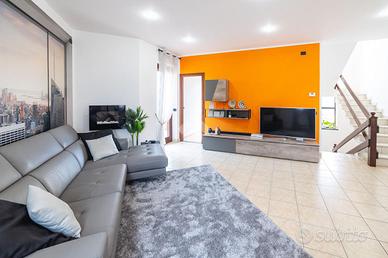 L'immobile si sviluppa su piano seminterrato, piano terra e primo piano. Al piano seminterrato troviamo un'ampia taverna con doppio accesso, sia interno dall'abitazione sia esterno tramite cancello elettrico, composta da grande zona giorno con angolo cottura, camino e bagno, perfetta come spazio conviviale o area relax.