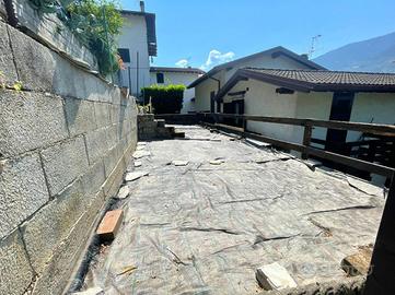 All'esterno, il giardino si sviluppa su tre livelli: il primo è adatto per essere utilizzato come zona pranzo all'aperto, il secondo ospita un ampio locale utilizzabile come portalegna o deposito, mentre il terzo si presta a diventare un orto o uno spazio verde da vivere nei mesi più caldi.