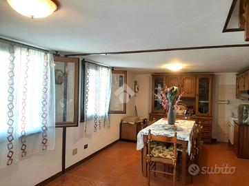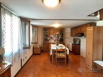 Con ingresso autonomo dal cortile comune si può raggiungere la seconda abitazione composta da zona taverna al piano terra di oltre 45 mq con altezze ridotte e dotata di angolo cottura, scale che conducono al piano primo dove si sviluppa l'abitazione principale composta da zona giorno con cucina, bagno completo e camera matrimoniale. Questa seconda unità abitativa distinta, presenta finiture ed impianti degli anni '70.