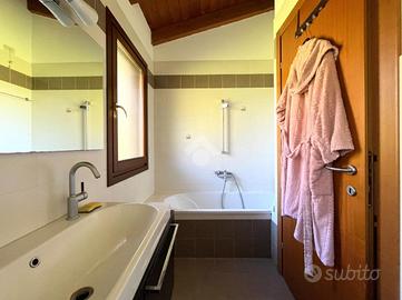 La zona notte si sviluppa sul secondo livello ed è composta da una camera matrimoniale con piccola cabina armadio e terrazza privata, il bagno padronale finestrato con vasca, una seconda camera ampia con terrazza e una terza camera singola, ideale come studio o stanza per gli ospiti.
