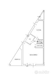 All'ingresso troviamo un ampio e luminoso soggiorno con doppio accesso allo spazio esterno, ideale per il relax e la convivialità. Un disimpegno conduce al bagno di servizio finestrato e alla cucina abitabile, anch'essa collegata al giardino. Completa il piano terra un pratico sottoscala ad uso ripostiglio.