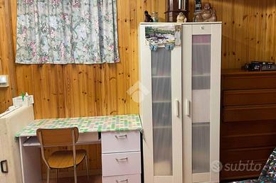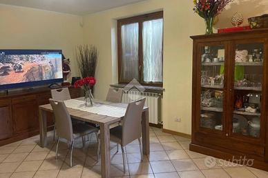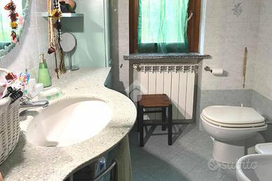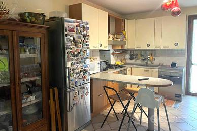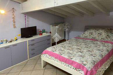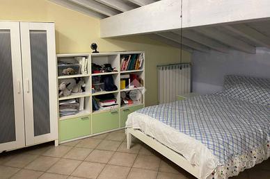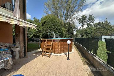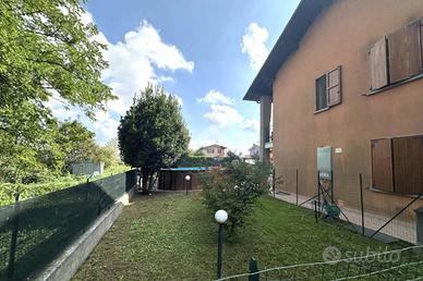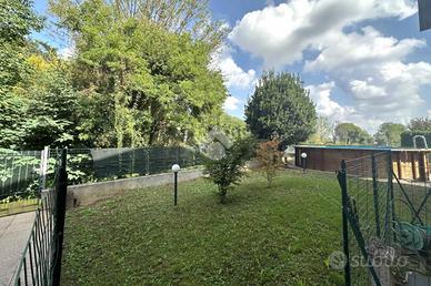 In bel contesto residenziale, proponiamo villa laterale posta su diversi livelli composta al piano terra da porticato d'ingresso e bagno con doccia. Soggiorno con cucina a vista e accesso diretto ad un secondo porticato di 8 mq e giardino su due lati di 174 mq con vista nel verde. Al primo piano troviamo due camere da letto di cui una con balcone ed il bagno padronale con box doccia. Al piano superiore, con accesso dalla cameretta, una mansarda con travi a vista ideale come terza camera. Al piano interrato, collegato alla zona giorno, una taverna con la lavanderia di 34 mq. Due box di proprietà adiacenti alla cantina.