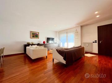 L'unità è interamente rifinita in parquet Teak africano, eccetto i bagni e la lavanderia che presentano pavimentazione in piastrella.
