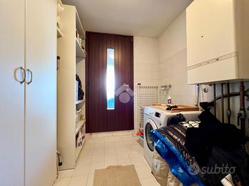 Il piano terra si completa di un bagno con box doccia e una pratica lavanderia.