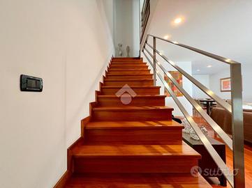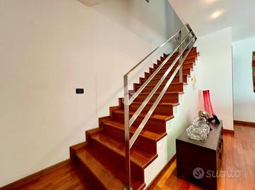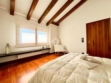 Salendo un'ampia scala impreziosita dalla ringhiera in inox raggiungiamo il piano primo che ospita la zona notte organizzata da due camere matrimoniali e una singola ed un bagno finestrato con vasca. Tutta la zona notte è caratterizzata dalle travi a vista in legno e dotata di impianto di climatizzazione.