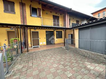 Al piano terra, la villa offre un ampio giardino privato pavimentato, perfetto per momenti di relax all'aperto.