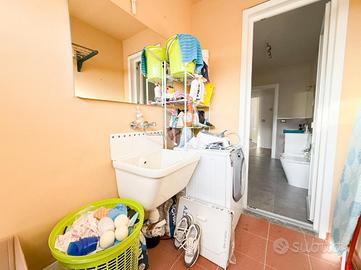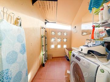 Il primo piano è dotato anche di un ampio bagno con doccia e accesso alla veranda adibita a lavanderia.