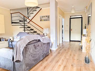 Completa la soluzione il giardino sul retro di circa 60 mq, la veranda, il garage e la cantina.