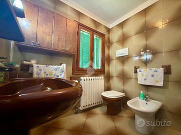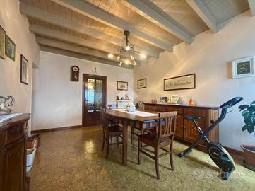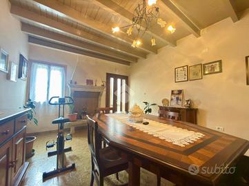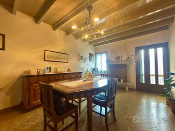 Soluzione semi-indipendente disposta su due livelli fuori terra. Al piano terra troviamo un ampio ingresso che conduce alla cucina, un secondo ambiente cucina, soggiorno, ripostiglio e due bagni. Al primo piano si sviluppa la zona notte composta da tre camere da letto e un ulteriore ripostiglio. Completano la proprietà una legnaia con cantina, due ripostigli esterni, un bagno di servizio, posto auto e ampio giardino privato.