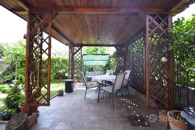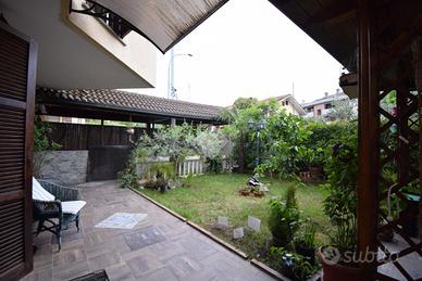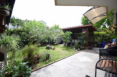 Al piano terra, un ampio e luminoso soggiorno, con cucina lasciata a vista, si affaccia sul giardino privato, perfetto per momenti di relax all'aperto. Giardino piantumato di circa 100 mq con area barbecue per pranzi e cene in totale privacy.