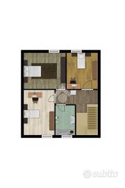 Ingresso diretto al piano terra in soggiorno, cucina abitabile con uscita su giardino privato, disimpegno che conduce ad un bagno finestrato con doccia.