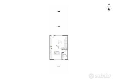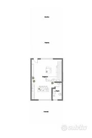 Attraverso un cancello pedonale accediamo alla soluzione. La corte di esclusiva proprietà è metà verandata, pavimentata e metà adibita a verde; proseguendo troviamo una luminosa zona living con cucina a vista e servizi igienici cui abbiamo l'accesso in un ulteriore corte posta sul retro sempre verandata, pavimentata e completa di area verde.