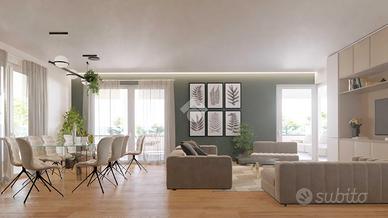 Ogni villa è dotata di ingresso pedonale indipendente che conduce direttamente a un giardino privato di 150 mq, impreziosito da un portico collegato alla zona giorno. Al piano terra si sviluppa un'ampia zona living open space di circa 40 mq calpestabili, con la possibilità di separare la cucina in un ambiente dedicato. Completano il livello un bagno di servizio finestrato, un pratico ripostiglio e il disimpegno che collega alla scala interna. Al piano primo, di circa 65 mq come il piano terra, si trova la zona notte composta da una camera matrimoniale con bagno privato, una camera singola con accesso a un loggiato coperto, una seconda camera singola e un ulteriore bagno finestrato. Il piano interrato, collegato direttamente all'abitazione, ospita una spaziosa lavanderia, un locale tecnico/cantina e un ulteriore vano cantinato con accesso diretto all'autorimessa di 46 mq.
