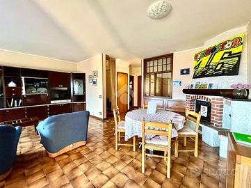 Al piano terra si apre una spaziosa zona giorno composta da soggiorno e sala da pranzo in un unico ambiente accogliente e ben illuminato dalle ampie finestre che affacciano sul balcone privato, dal quale si può godere di scorci suggestivi di vista lago. Il camino, posto in un angolo della stanza, dona calore e carattere all'ambiente, rendendolo ideale per trascorrere momenti di relax in famiglia. La cucina, ampia e abitabile, resta separata e dispone di un proprio balcone. Sullo stesso livello è presente un primo bagno finestrato con box doccia e l'ingresso principale, valorizzato da un grazioso giardino privato.