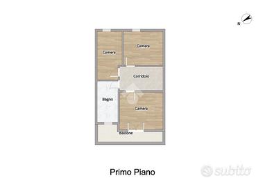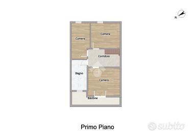 Salendo al piano primo troviamo un comodo bagno finestrato con vasca e tre comode camere da letto di cui la padronale con balcone che aggiunge un tocco di spazio esterno, perfetto per momenti di relax.