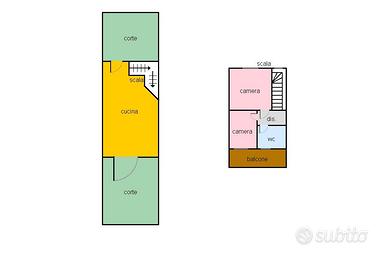Al piano terra la zona giorno, con solotto e cucina open space, al piano superiore due camere e bagno.