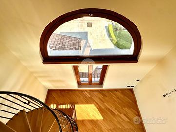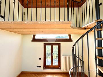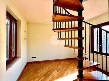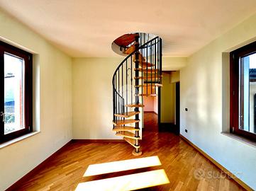 La scala a chiocciola accede alla stanza posta al secondo piano, con soppalco, ideale come studio.