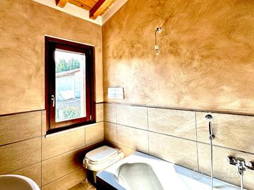 Il primo piano ospita due camere, una matrimoniale ed una singola da 10 mq, ed il bagno finestrato con vasca.