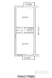 Al piano primo troviamo due luminose camere da letto matrimoniali, entrambe con poggiolo.