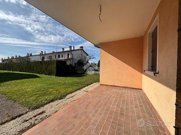 DUE CARRARE: In zona tranquilla e residenziale, villetta a schiera di testa disposta su due livelli con spazi ben distribuiti. Al piano terra ampia zona giorno con cucina a vista e soggiorno con caminetto affacciano sul porticato pavimentato rivolto a sud. A completare il piano un primo bagno finestrato con doccia ed il garage comunicante internamente con l'abitazione. Al secondo piano la zona notte composta da tre camere da letto dotate di terrazzo abitabile e un secondo bagno finestrato con vasca. Completano la proprietà il giardino privato offre un ulteriore spazio verde da personalizzare secondo i propri gusti ed un posto auto esterno garantendo comodità di parcheggio.